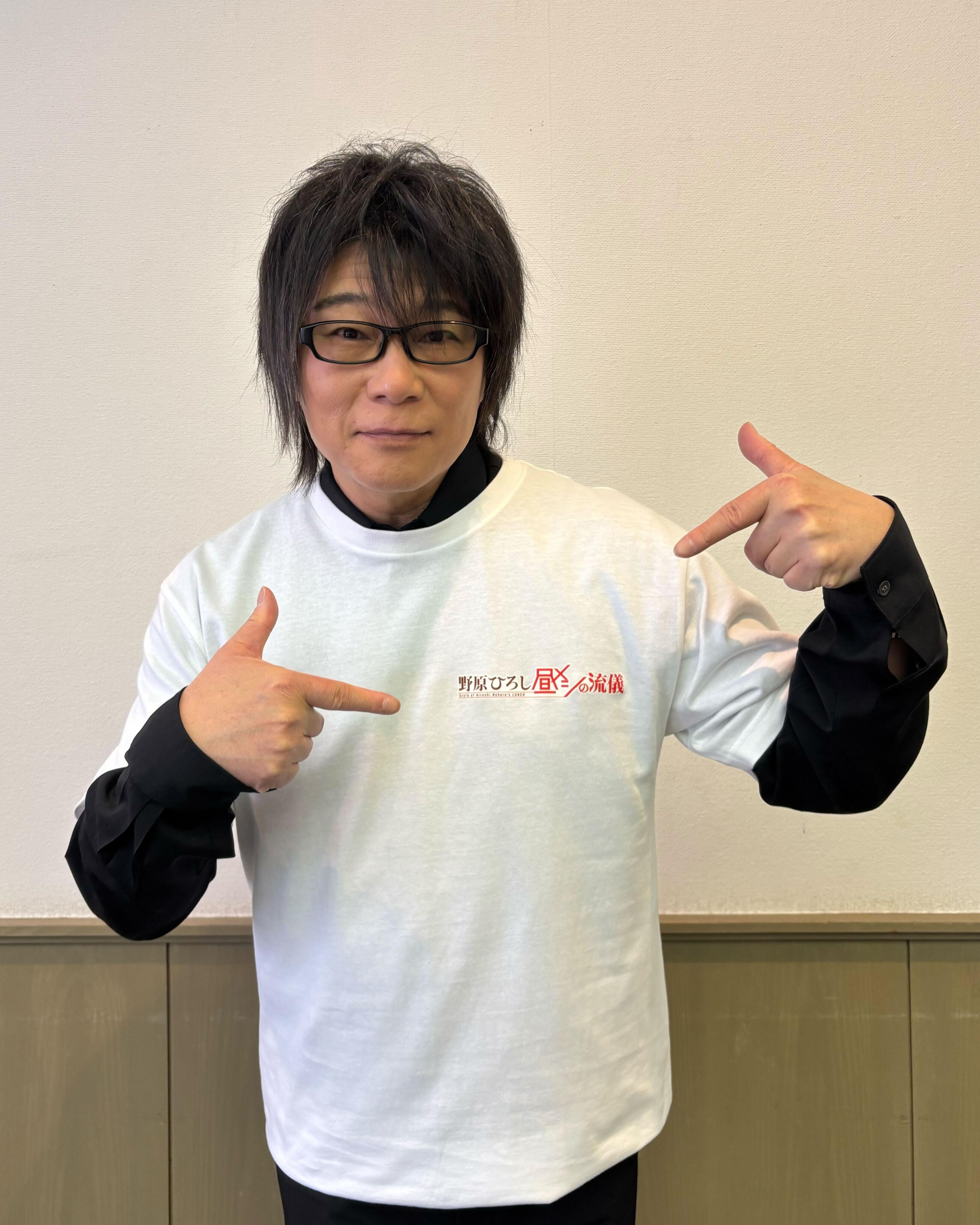 ■野原ひろし役の声優・森川智之さんにA賞Tシャツを着用いただきました。