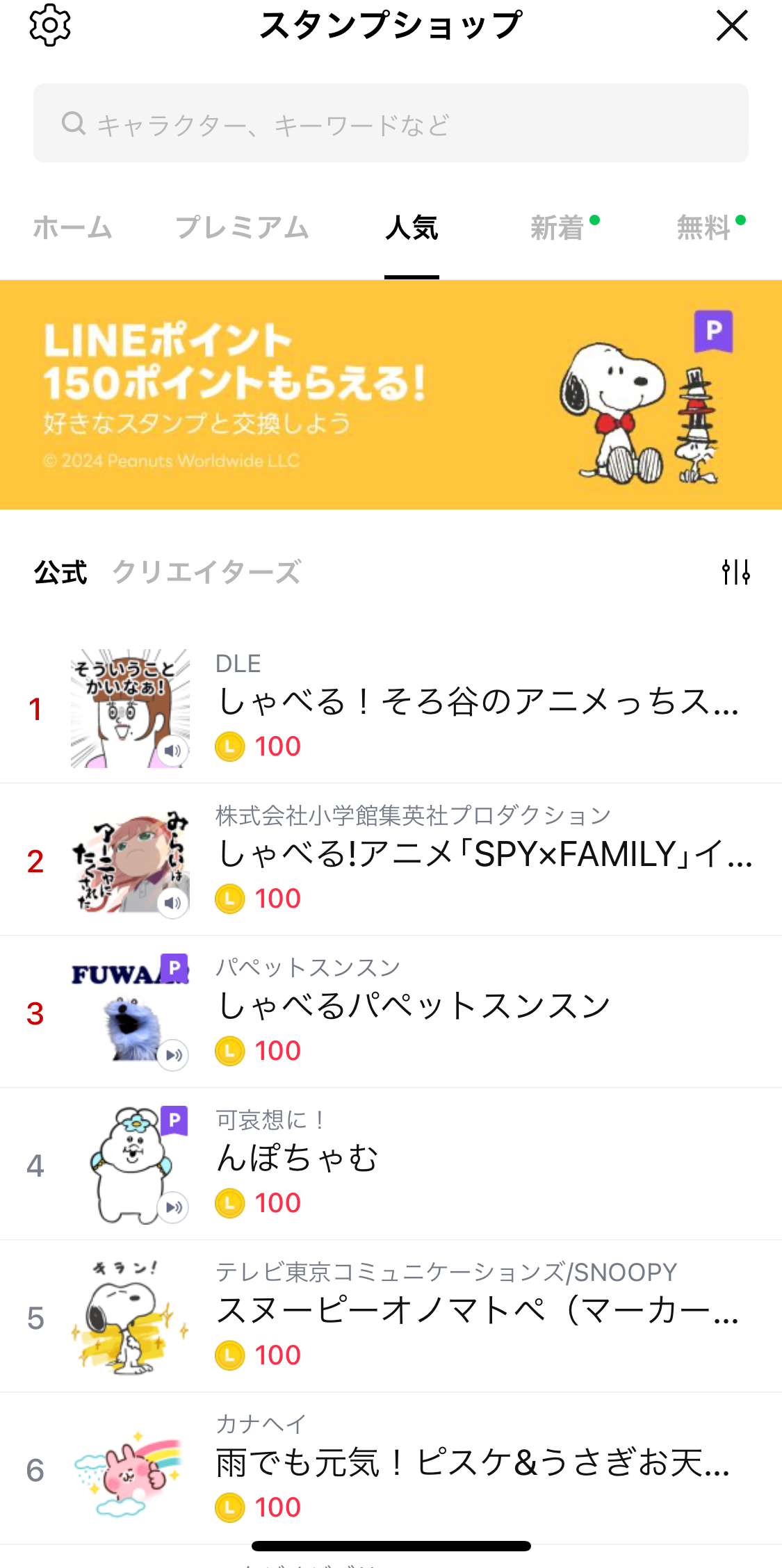 ※2024年7月12日LINE公式スタンプ月間ランキング