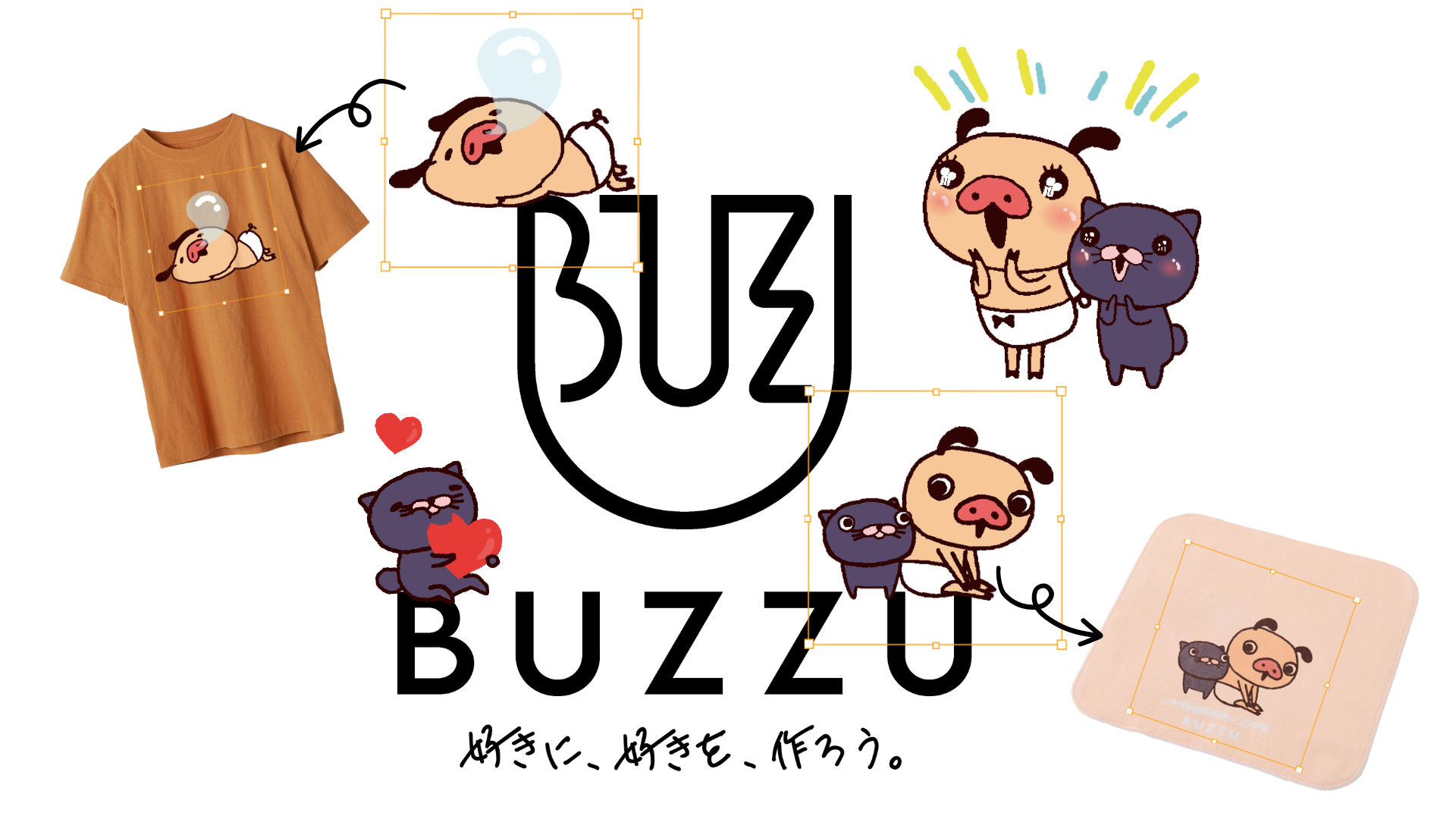 この度の「Sakura Virtual Fes 2024」を記念し、期間限定で特別にコラボレーションした「パンパカパンツ」をBUZZUのサイト上でスタンプとして活用しながら自身のオリジナルアイテムを制作いただけます。