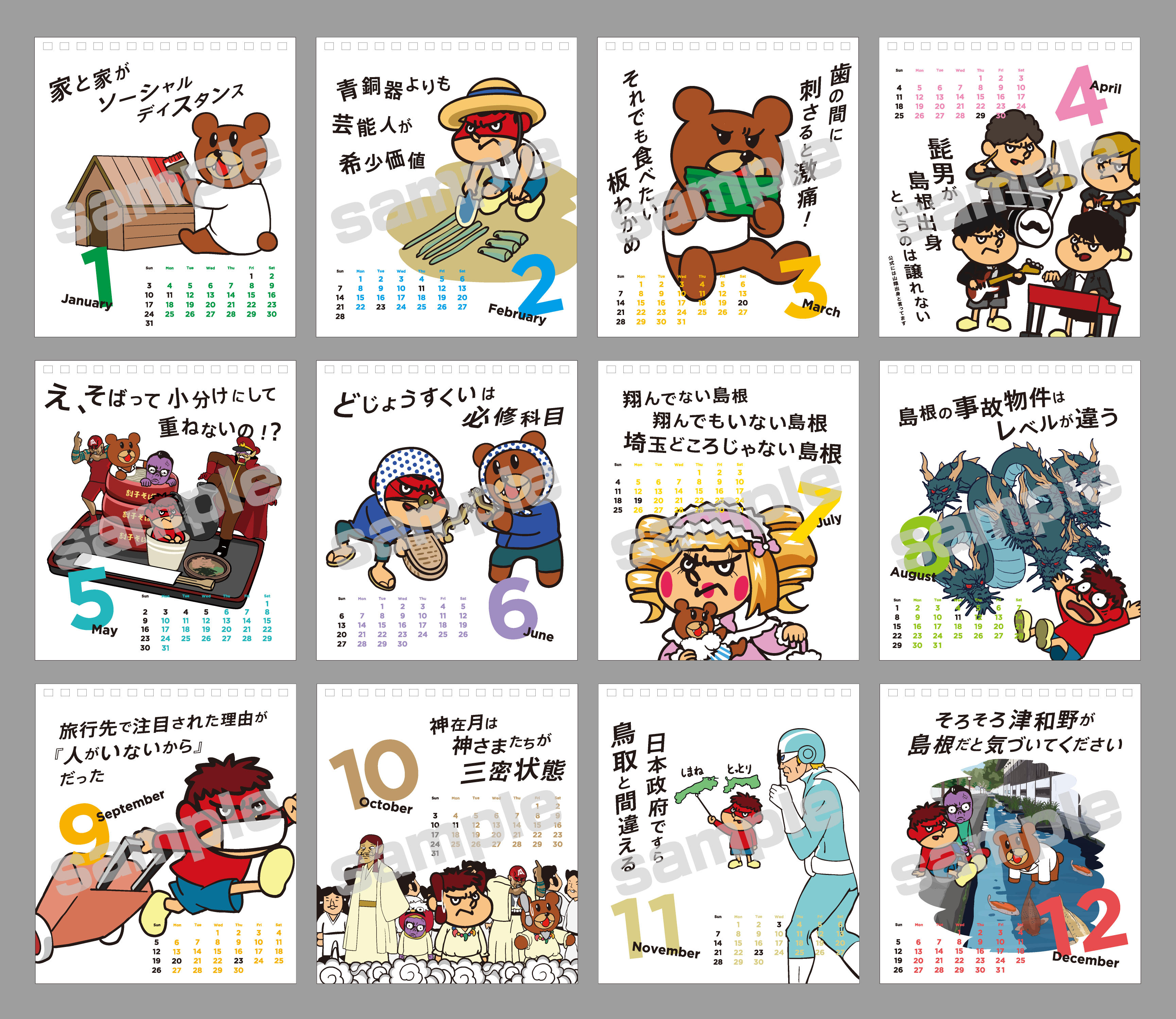 「鷹の爪 島根自虐カレンダー」は、『秘密結社 鷹の爪』作者FROGMANゆかりの地である島根県を、こんなにいじっちゃっていいの?と心配になるほどの