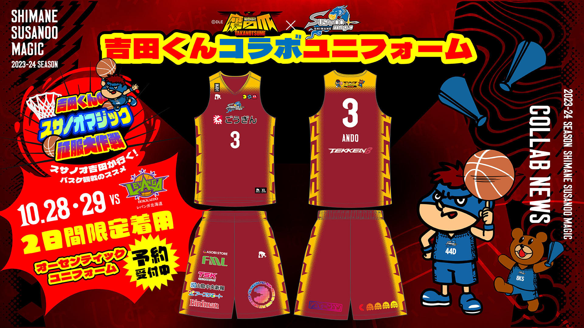 島根スサノオマジック2023-24 SEASON 応援アンバサダーの就任に伴い、【吉田くん×島根スサノオマジック】コラボグッズを、下記にて発売いたします。アイテムのデザインにつきましては、後日公開させていただきますので、楽しみにお待ちください!