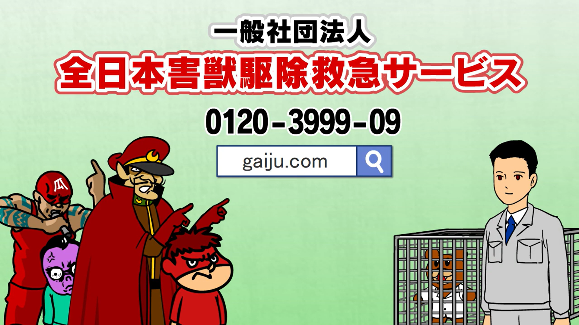 日本全国、24時間365日展開する全害救のサービスをわかりやすくユニークに解説する動画になっています。